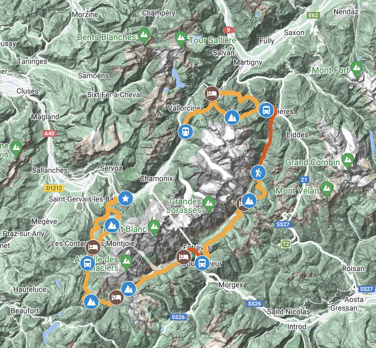 - The route from Champex to Trient over the Fenetre d’Arpette is quite dangerous at the top. The final climb is over soft snow combs and very loose rocks. Definitely not appropriate for anyone other than expert hikers.